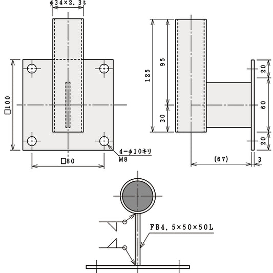 カーブミラー ポール角型反射鏡(ステンレス製)