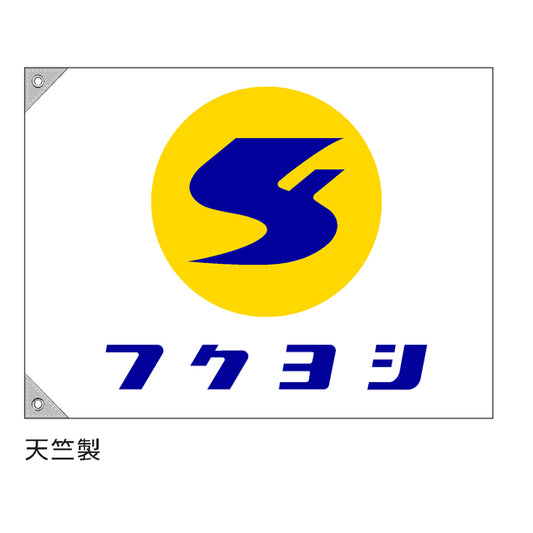 特注 社旗 社名とマークの2色刷り (マークが2色のうち、1色が社名と同色)