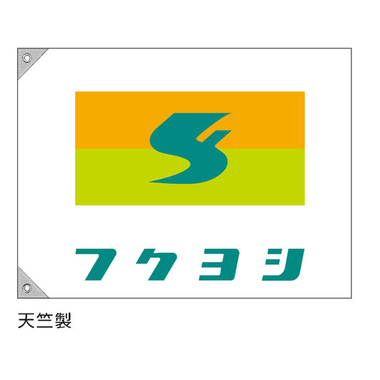 特注 社旗 社名とマークの3色刷り (マークが3色のうち、1色が社名と同色)