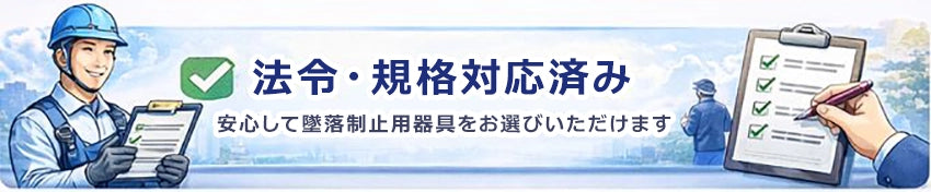 労働安全衛生法に準拠した墜落制止用器具で、建設現場の安全を確実に