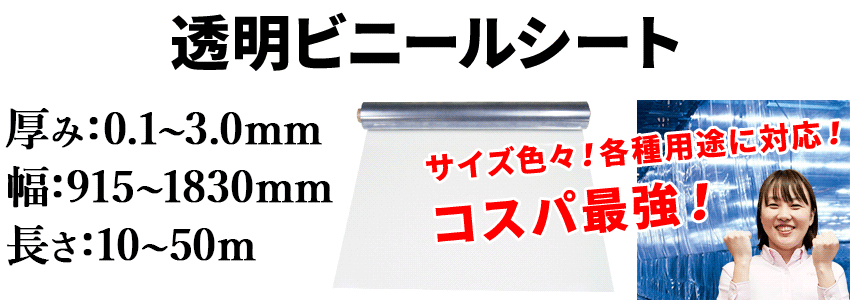 人気No.1の格安タイプ!柔軟で使いやすく、冬場でも硬化しにくい硬度設計の透明ビニールシートです。 |