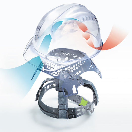 従来型の発泡スチロールの代わりに、通気性、換気性に優れた樹脂製ライナーを搭載した次世代型の作業用ヘルメット!