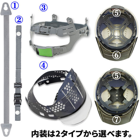 エアライトヘルメット[飛翔]Plus【ブロックライナー/通気孔あり/シールド付】
