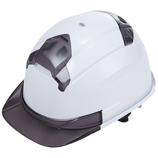 【遮熱】サングラス代わりのグレーシールド面付きエアライトヘルメット【ブロックライナー/通気孔なし/グレーシールド付】
