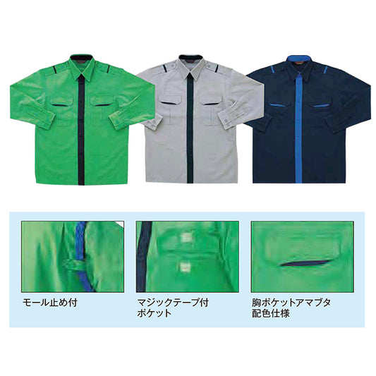 TH-7203 男子警備ポケット切替春夏長袖カッターシャツ上下セット