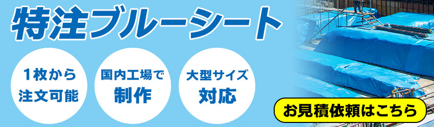 防水性があるので雨除けのカバーとしても使えますし、また災害の多い近年では、備蓄としてもご要望が多いのが、ブルーシートです。