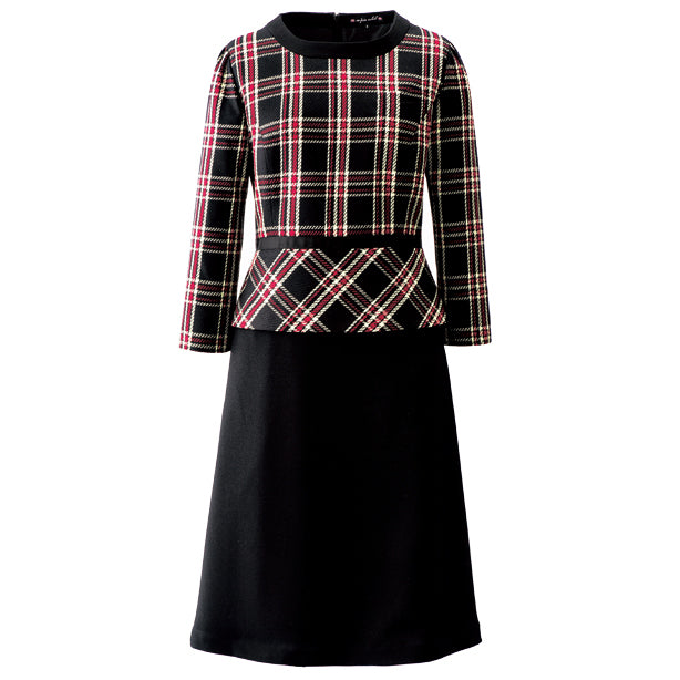 鮮やかな赤とアイボリーが際立つenjoieワンピース。