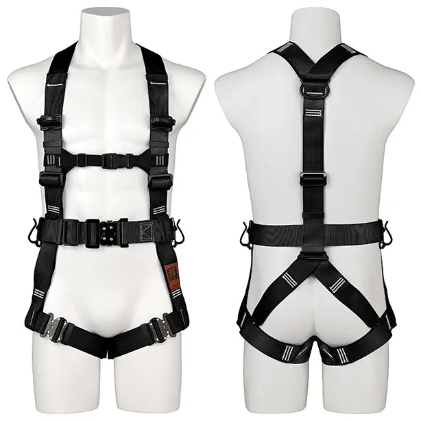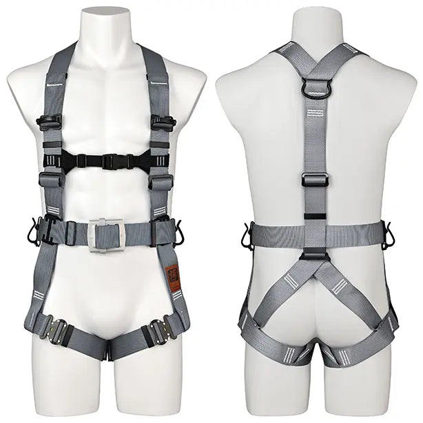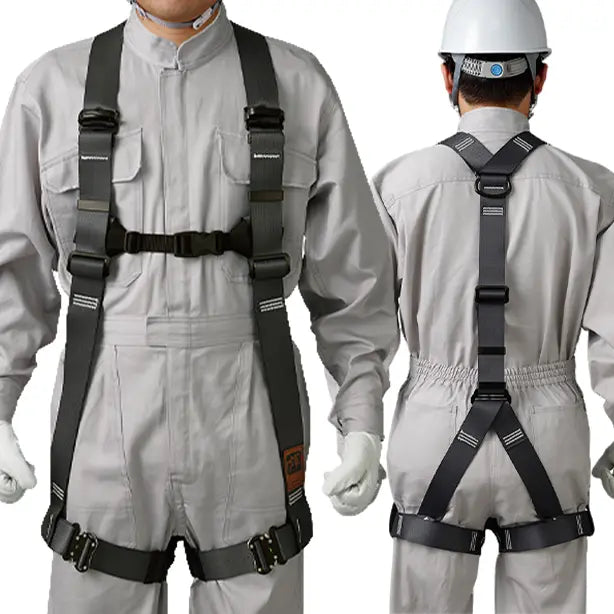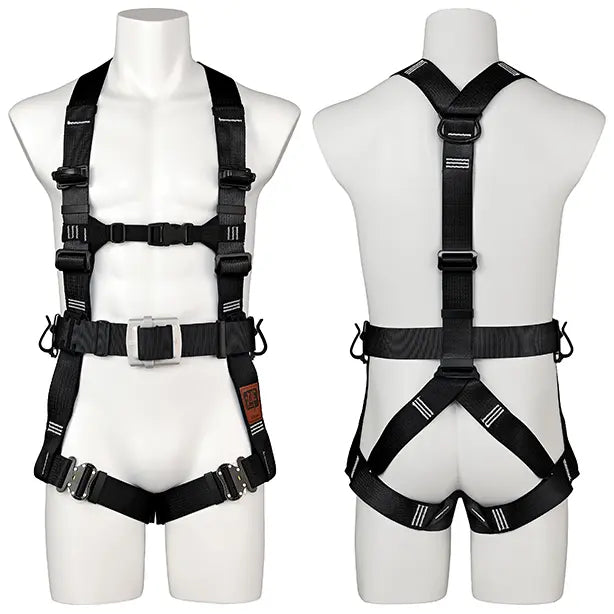 動きの激しい作業でも緩みにくく、さらに耐久性に優れた金属製の胴ベルトアタッチメントを採用したプロが認めたフルハーネス。