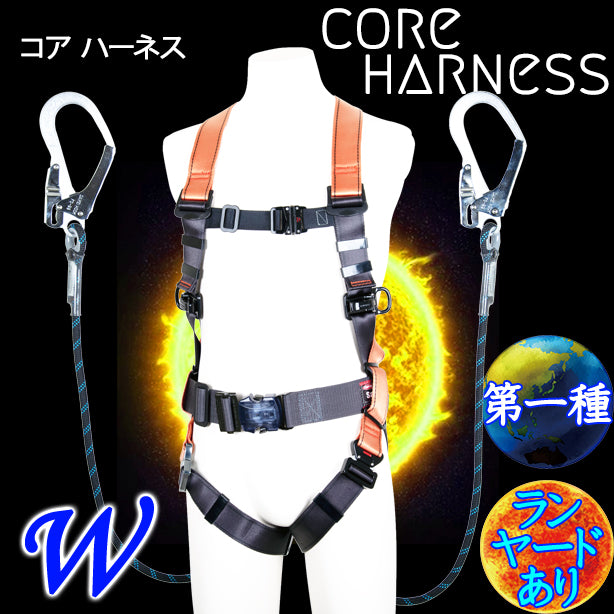 作業ベルトが標準装備。長い時間働くあなたを快適にサポートするランヤード付コアハーネス!