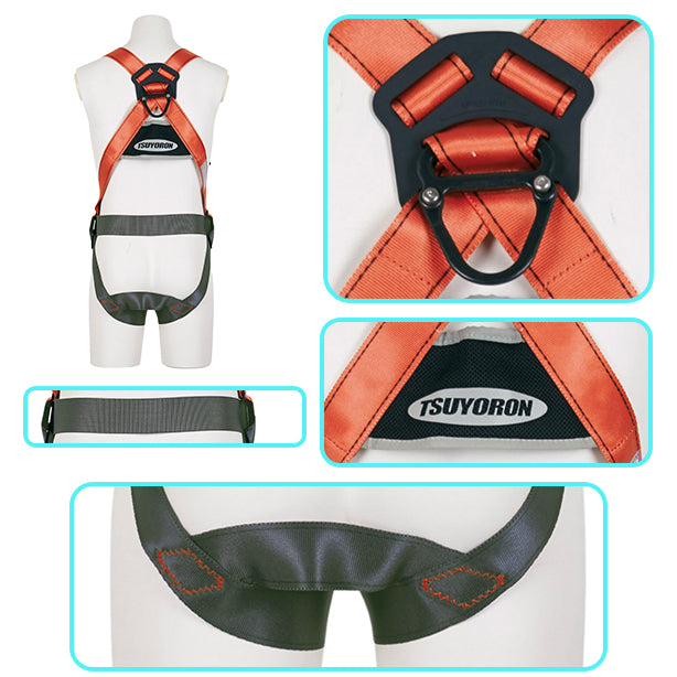 胴ベルト搭載の為、局部的に負荷が生じることなく、胴体部全体で支持します。ツヨロンのランヤード付コアハーネスで、安全性・快適性の両立UP!