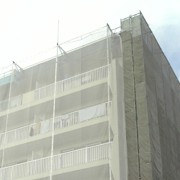 飛散防止効果を持ちつつ通気性と採光性、換気のよいメッシュシート。ぜひお試しください。