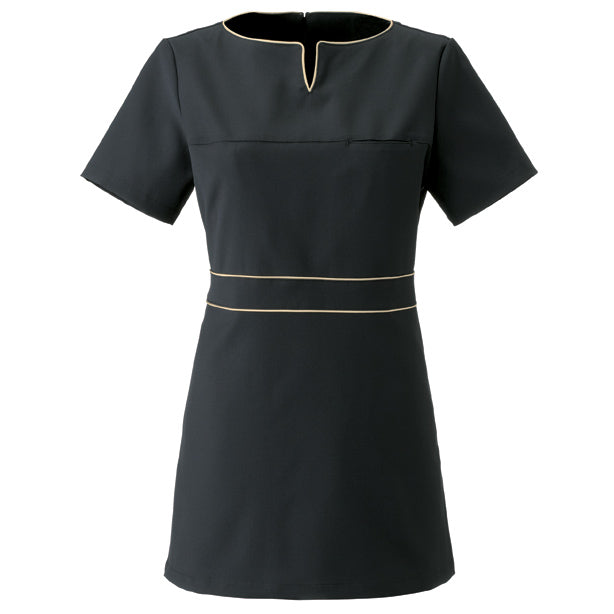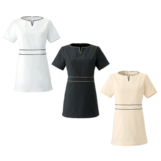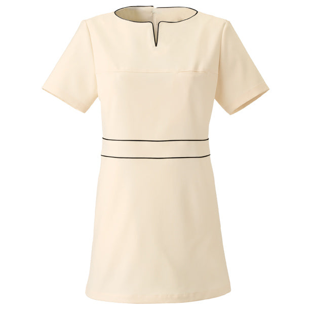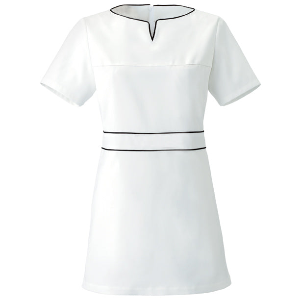 シンプルながら、襟元のパイピングがデコルテラインを美しく際立たせます。