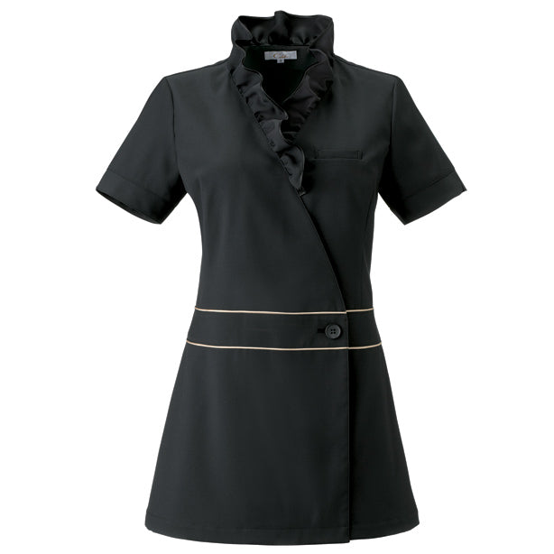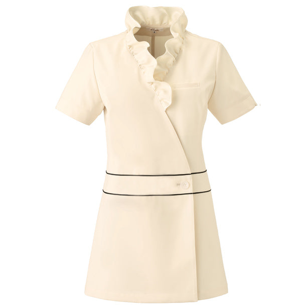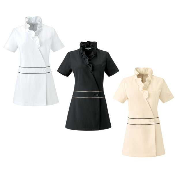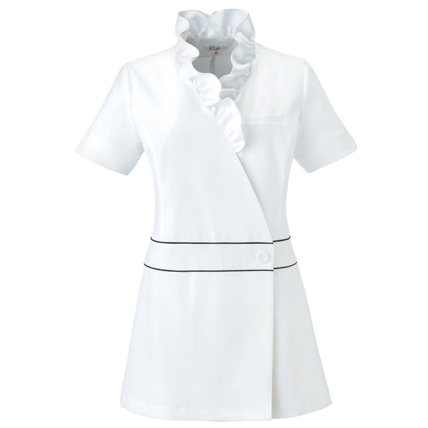 首元のフリルが女性らしさを際立たせ、顔立ちをより華やかに演出します。