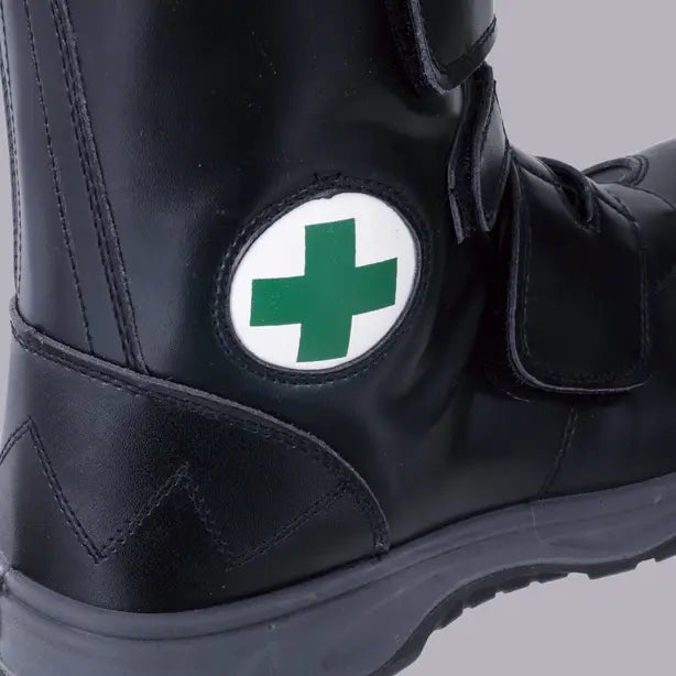 足首もしっかりホールドする安全長編上(ながあみあげ)マジック。マジックテープ、サイドファスナーで着脱がスムーズです。