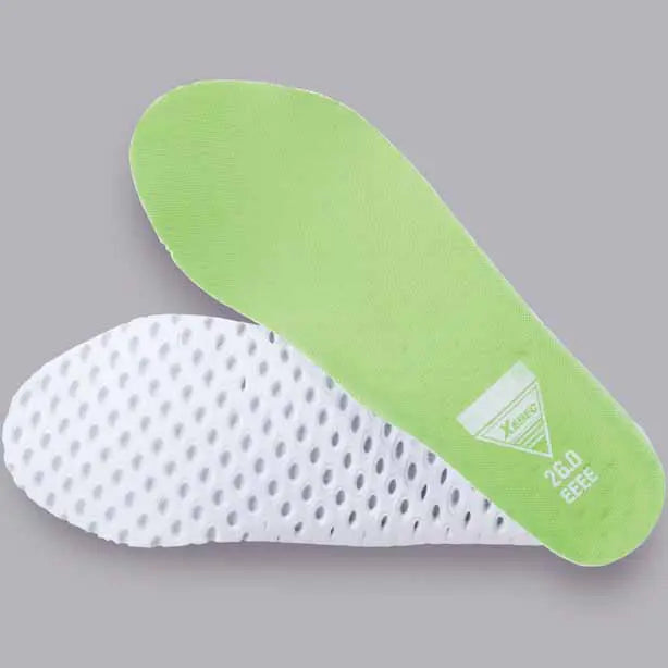 つま先アッパーは通気性の優れたナイロンメッシュを広範囲に使用、穴あきEVAにメッシュを使い靴内部の空気を循環。ムレを防ぎ快適です。