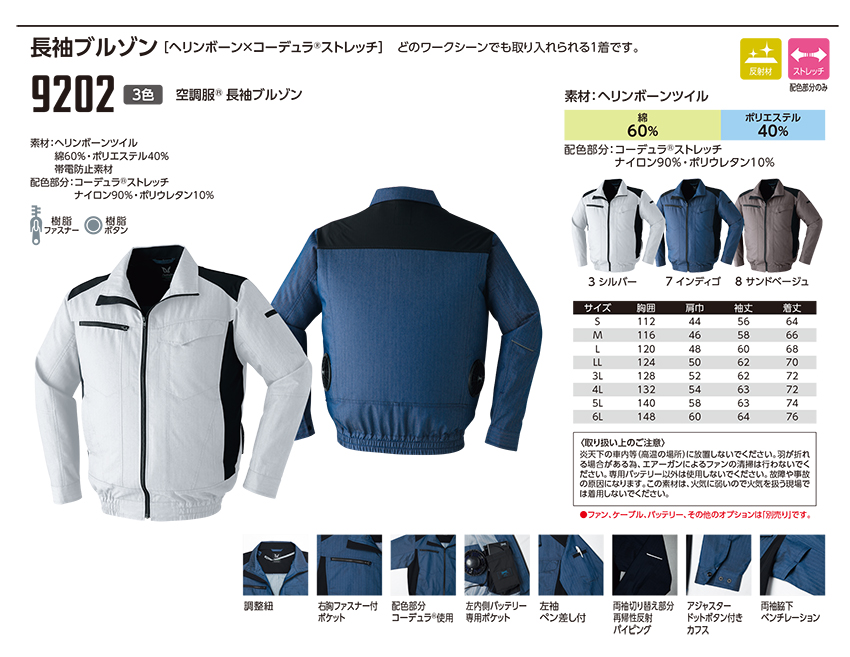 Asahicho AC-9202 ヘリンボーンコーデュラ®ストレッチ空調服®長袖ブルゾン