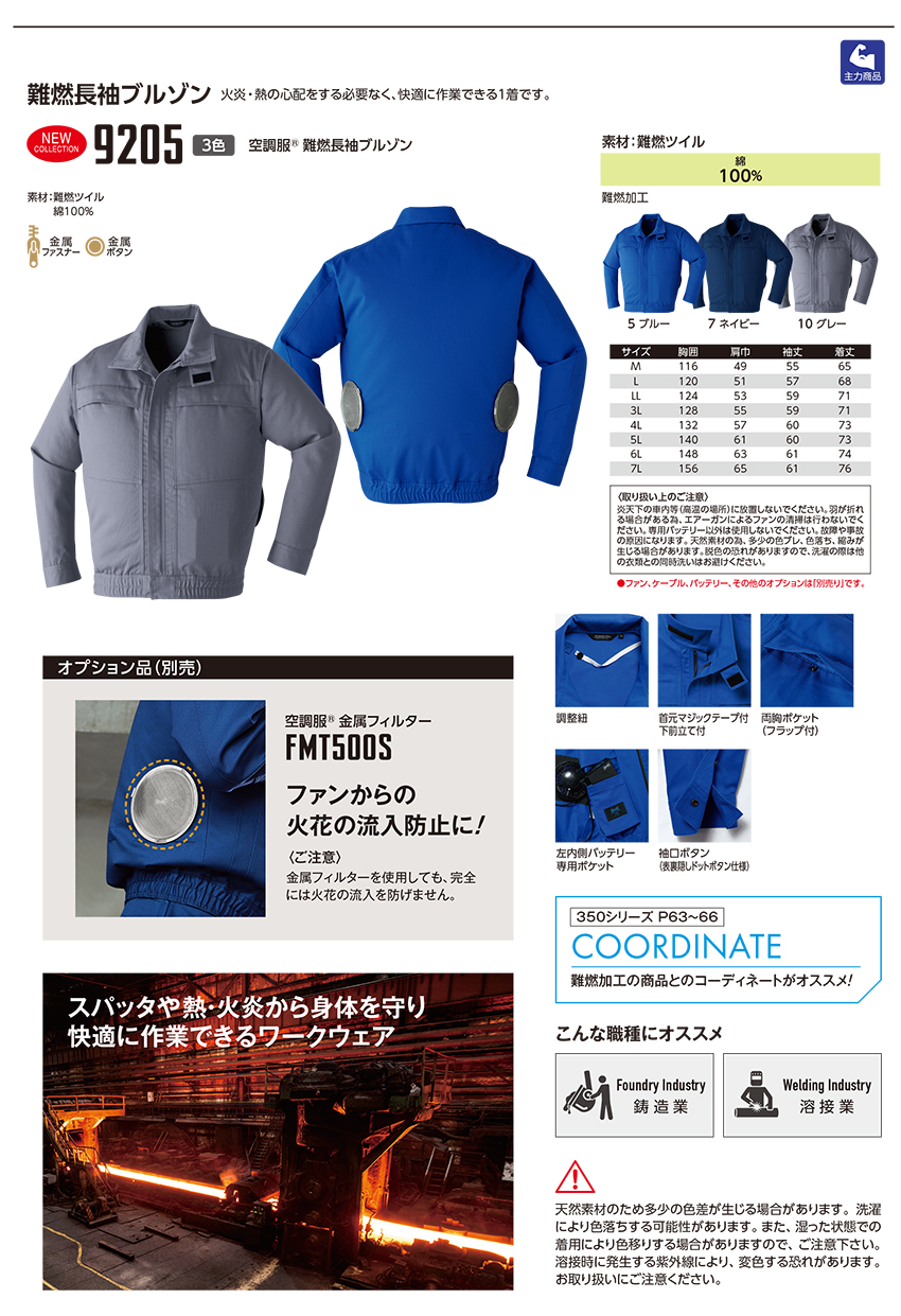 Asahicho AC-9205 難燃空調服® 長袖ブルゾン