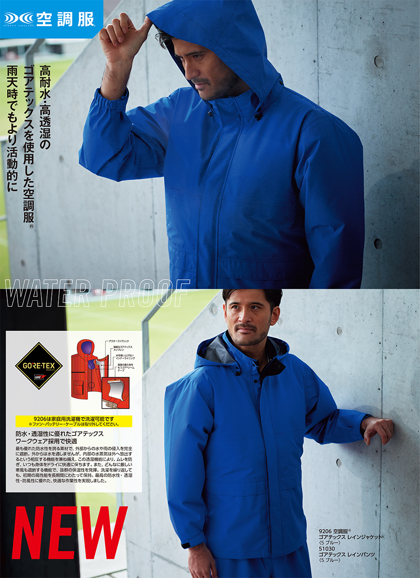 高耐水・高透湿のゴアテックスを使用したハイスペックな 空調服® 合羽!雨天時でもより活動的に!