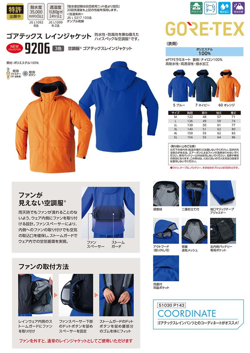 Asahicho AC-9206 ゴアテックス レインジャケット 空調服®