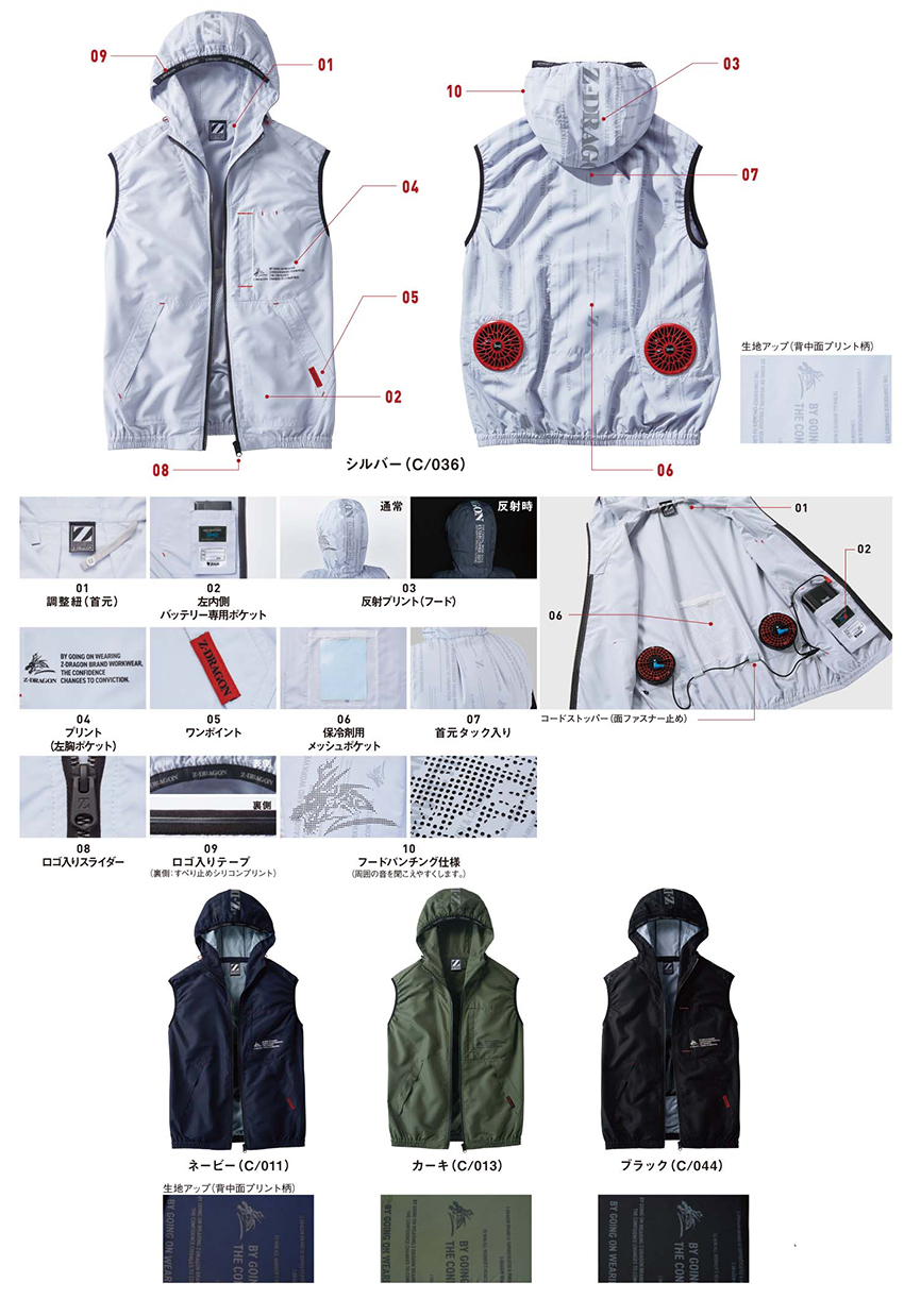 Z-DRAGON JC-74250 フード付き 空調服® ベスト